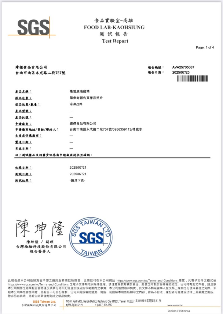 《食在安心》 為了每位顧客的身體健康 惠普康滴雞精…